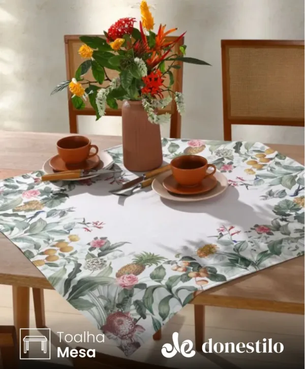 O centro de mesa Renova Verena com 50% algodão e 50% poliéster, unindo maciez, durabilidade e um acabamento de alta qualidade.