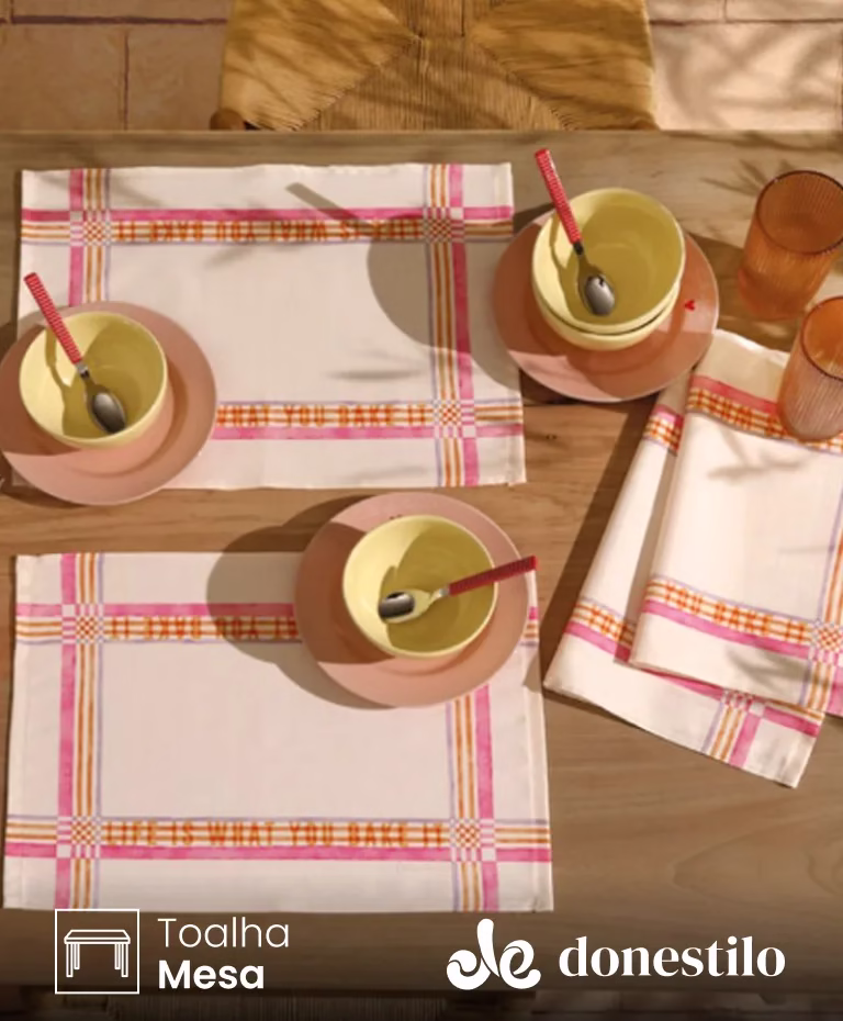 O Jogo Americano Döhler Renova Candy (4 peças), 45 cm x 31 cm. Confeccionado com 50% algodão e 50% poliéster, oferece o melhor dos dois materiais: a maciez do algodão e a durabilidade do poliéster.