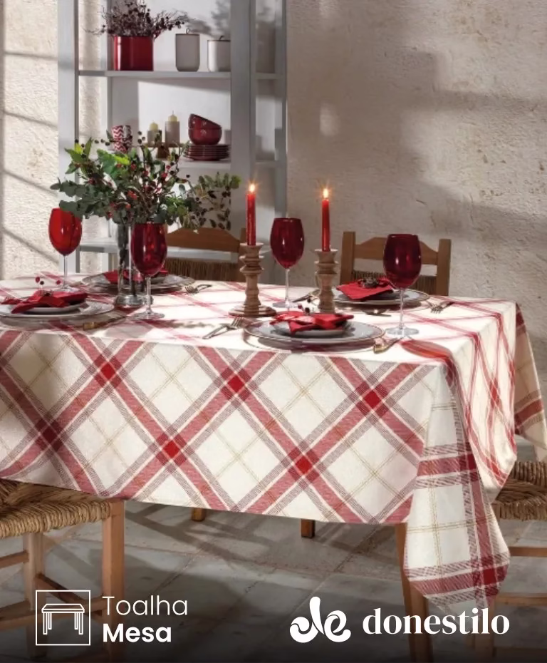A Toalha de Mesa Quadrada Döhler para 4 lugares, modelo Celebra Natal 99. Com detalhes em lurex, essa peça traz ainda mais beleza e sofisticação para a sua celebração, destacando-se pelo seu acabamento fino. Confeccionada com uma mistura de 55% poliéster e 45% algodão, com gramatura de 130 g/m², garante durabilidade e um toque agradável. Seu tamanho é 160×160 cm