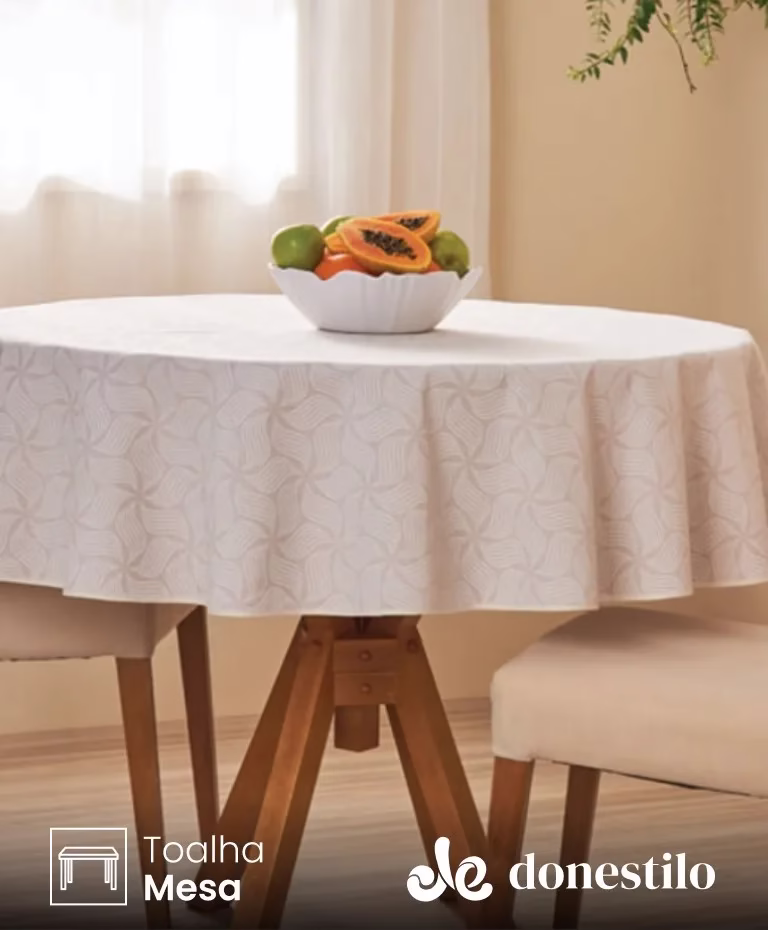 A Toalha de Mesa Redonda Lepper, 4 lugares, modelo Copacabana. Confeccionada com uma mistura de 90% algodão 10%poliester, com gramatura de 160 g/m², garante durabilidade e um toque agradável. Seu tamanho de 155 cm é ideal para mesas redondas, proporcionando um ajuste perfeito e elevando a decoração do ambiente com elegância e charme.